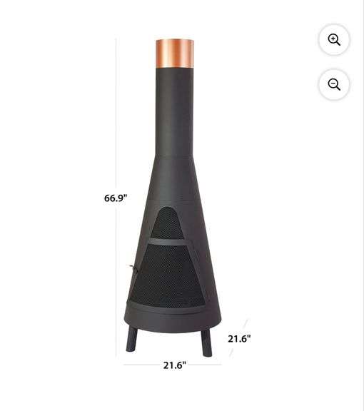 LOT 165 - Tall Round Powder-Coated-Black Finish Steel Wood Burning Chiminea
